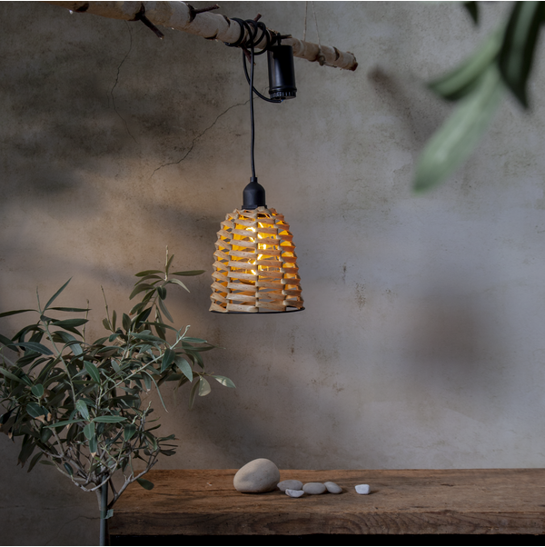 Stilīga brūna plastmasas rotangpalmas lampa. Spuldzes iekšpusē ir vītā kvēlspuldze ar LED. Ar akumulatoru un taimera funkciju.
