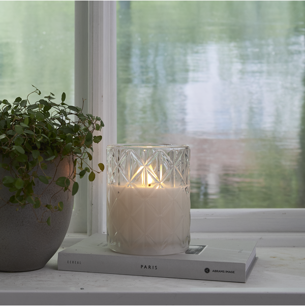 Skaistajai Flamme svecei ir dabiska izskata imitēta liesma, kas mirdz ar silti baltu gaismu. Svece ir ievietota dzintara glāzē. Svecei ir iebūvēts taimeris, kas darbojas 6 stundas.